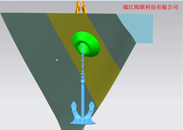 經(jīng)過與國內(nèi)行業(yè)權(quán)威設(shè)計院的合作過,并將該技術(shù)應(yīng)用于船舶建造中,對錨鏈筒、錨臺、錨唇、錨穴、錨、錨鏈、錨機、止鏈器、導(dǎo)鏈滾輪、船體等進行三維設(shè)計和自動建模,實現(xiàn)了三維錨系計,保證了錨系設(shè)計中空間位置定位的準(zhǔn)確性,并通過三維軟件導(dǎo)出二維CAD圖紙,扭轉(zhuǎn)了一直以來二維圖紙與船廠錨系施工脫節(jié)的局面,極大提高了錨系設(shè)計的效率。除此之外,利用軟件的后期的仿真功能,模擬并預(yù)報收錨過程的動態(tài)效果并給出調(diào)整方案。